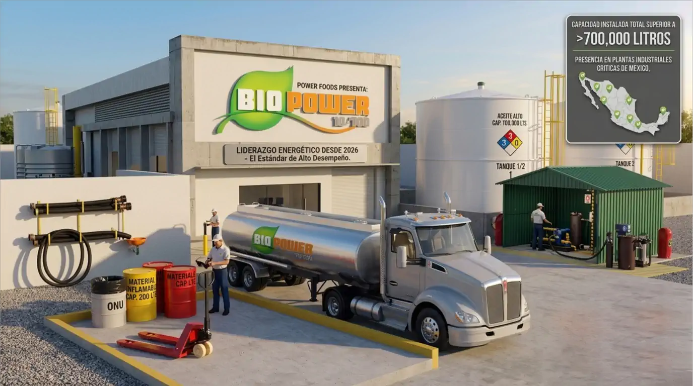 Capacidad instalada superior a los 700,000 litros con presencia en las plantas industriales más críticas de México. BIOPOWER 10-700 se consolida como el energético alterno líder por su eficiencia térmica y bajo impacto ambiental.